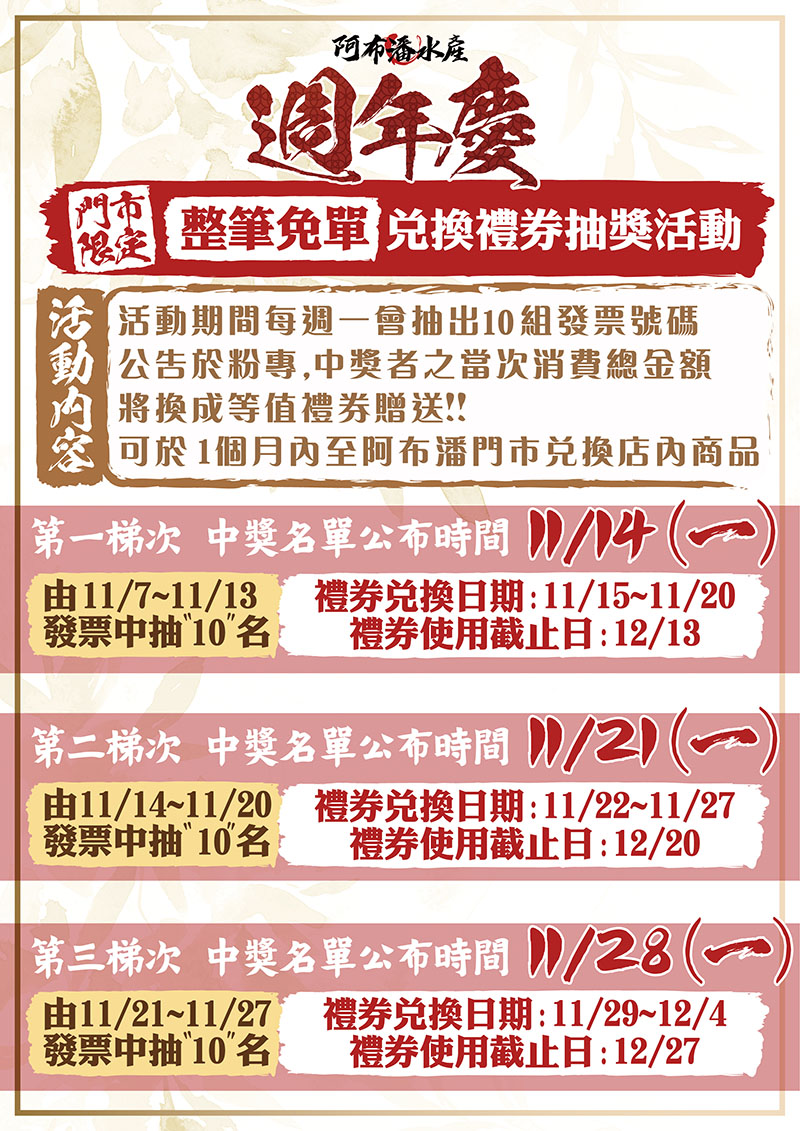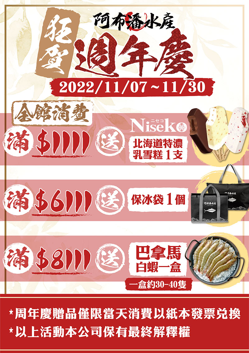 【阿布潘週年慶】【門市限定】各種瘋狂折扣強勢來襲!!